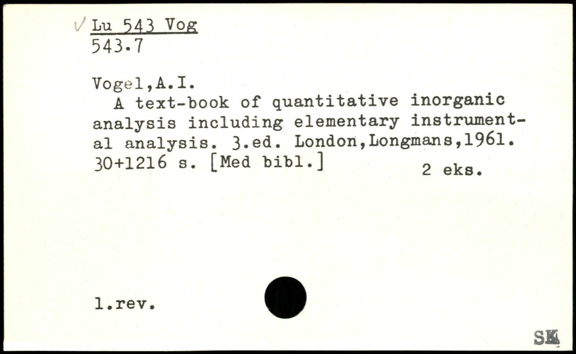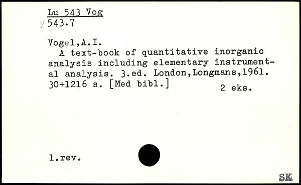 A text-book of quantitative inorganic analysis including elementary instrumental analysis.