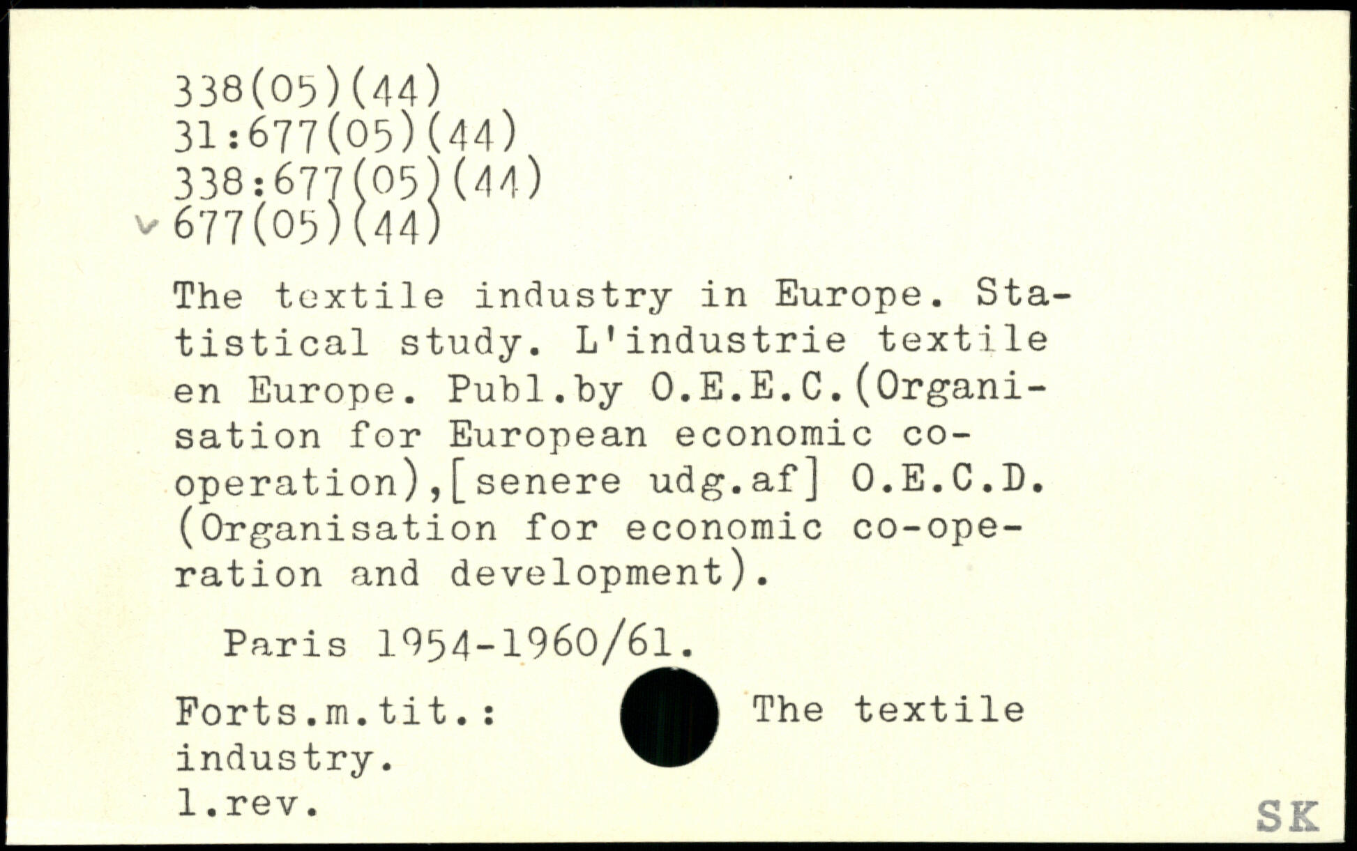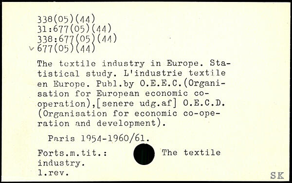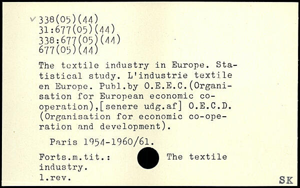 The textile industry in Europe. Statistical study. L'industrie textile en Europe.