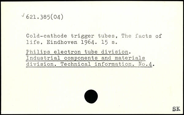 Cold-cathode trigger tubes, The facts of life. Eindhoven 1964.