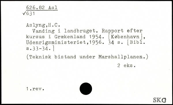 Vanding i landbruget. Rapport efter kursus i Grækenland 1954. [