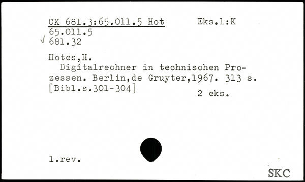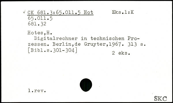 Digitalrechner in technischen Prozessen. Berlin,de Gruyter,1967.