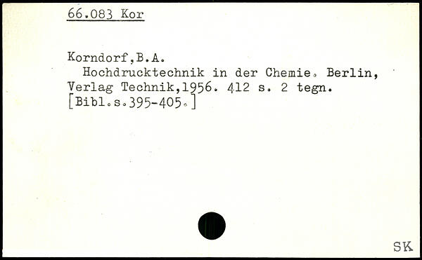 Hochdrucktechnik in der Chemie, Berlin, Verlag Technik,1956. 412 s. 2 tegn.