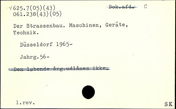 Der Strassenbau. Maschinen, Gerate, Technik. Düsseldorf 1965“ Jahrg.96- -=^ea l^h^iade ...arg. n-d-I-Anes t kke.. i.rev. SK