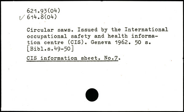 Circular saws. Issued by the International occupational safety and health information centre (CIS).