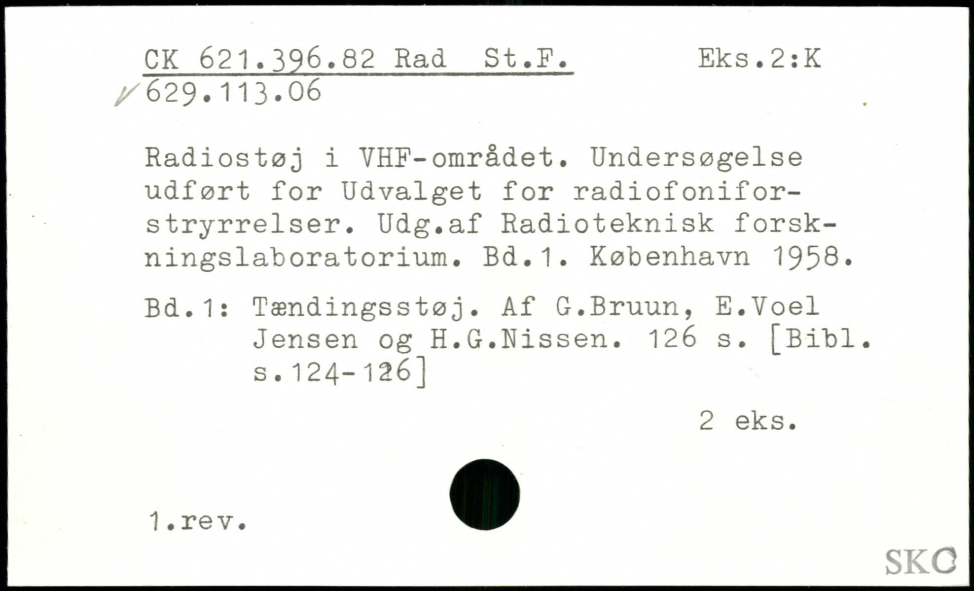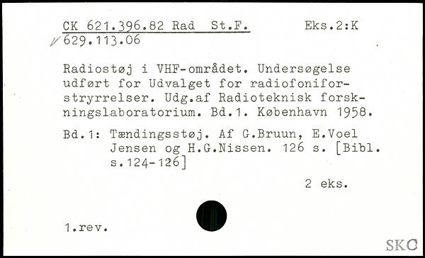 Radiostøj i VHF-området. Undersøgelse udført for Udvalget for radiofonifor-stryrrelser. Udg.af Radioteknisk forskningslaboratorium.