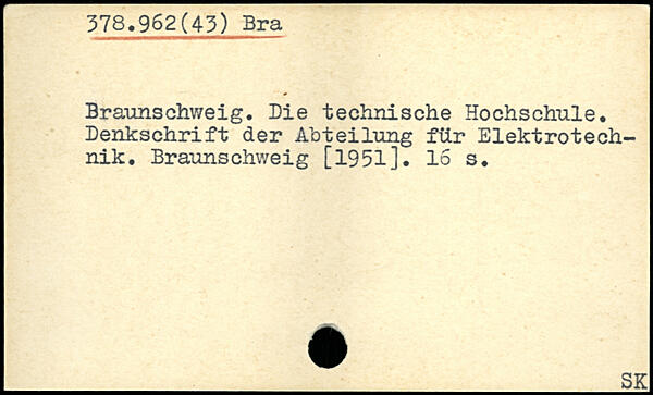 Braunschweig. Die technische Hochschule. Denkschrift der Abteilung für Elektrotechnik. Braunschweig [1951].