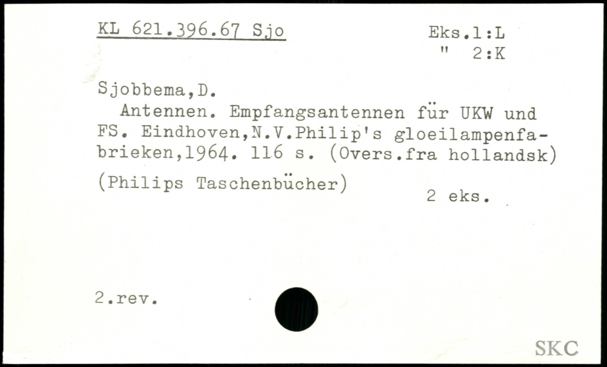 Antennen. Empfangsantennen für UKW und FS. Eindhoven,N.V.Philip?s gloeilampenfa-brieken,1964.