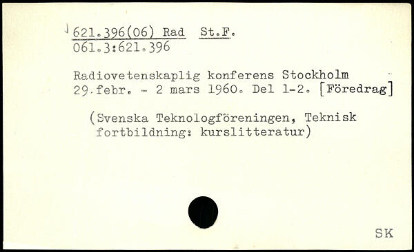 Radiovetenskaplig konferens Stockholm 29-febr. - 2 mars 19600 hel l-2o [Föredrag]