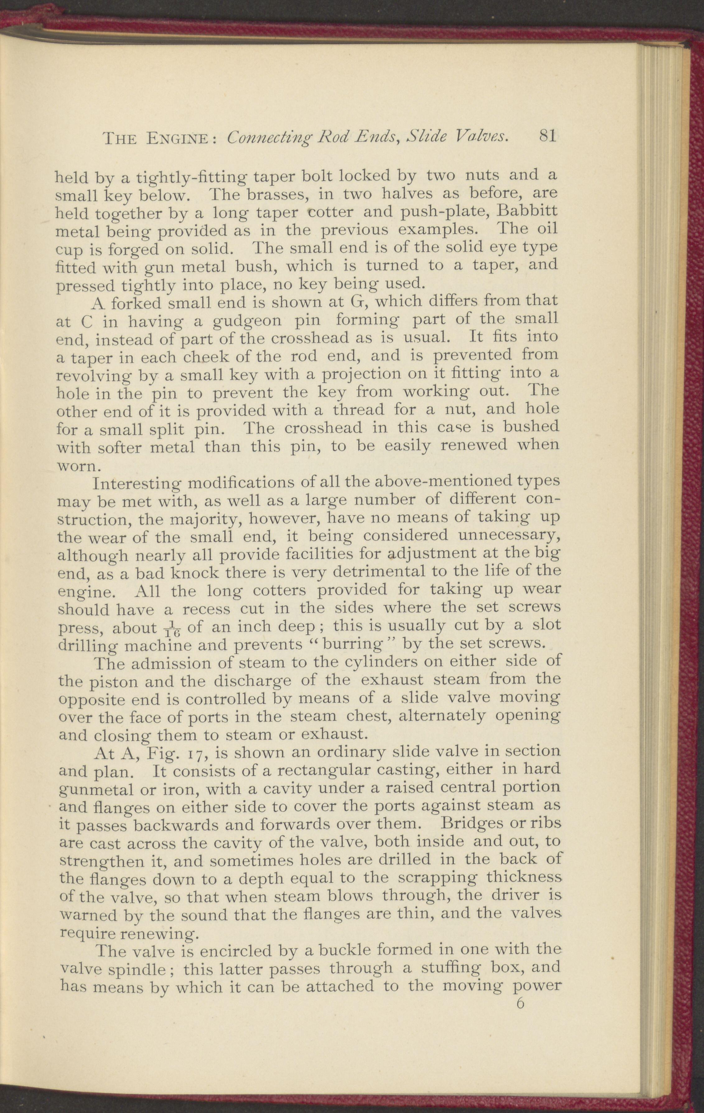 The Engine : Connecting Rod Ends, Slide Valves. 81