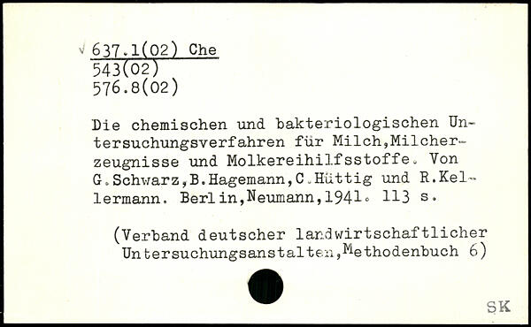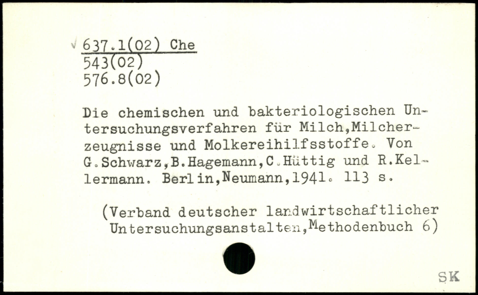 Die chemischen und bakteriologischen Untersuchungsverfahren für Milch,Milcher~ zeugnisse und Molkereihilfsstoffe. Von Gr, Schwarz?B.Hagemann, C ,Huttig und R.