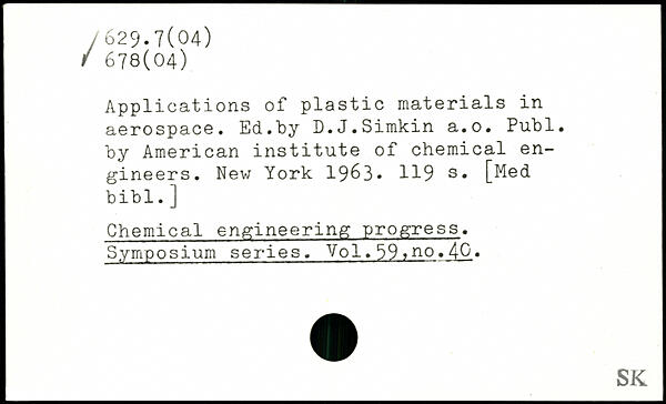 Applications of plastic materials in aerospace. Ed.by D.J.Simkin a.o.