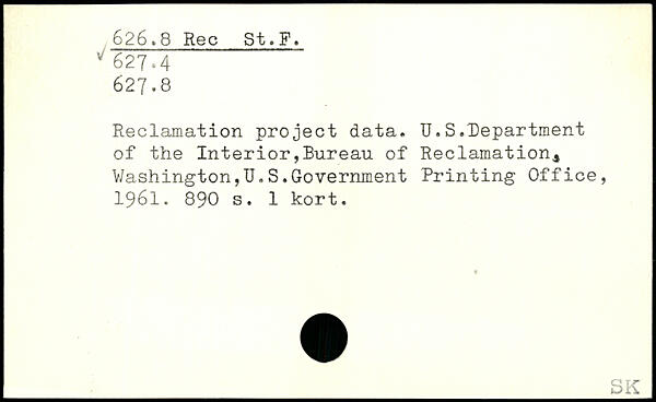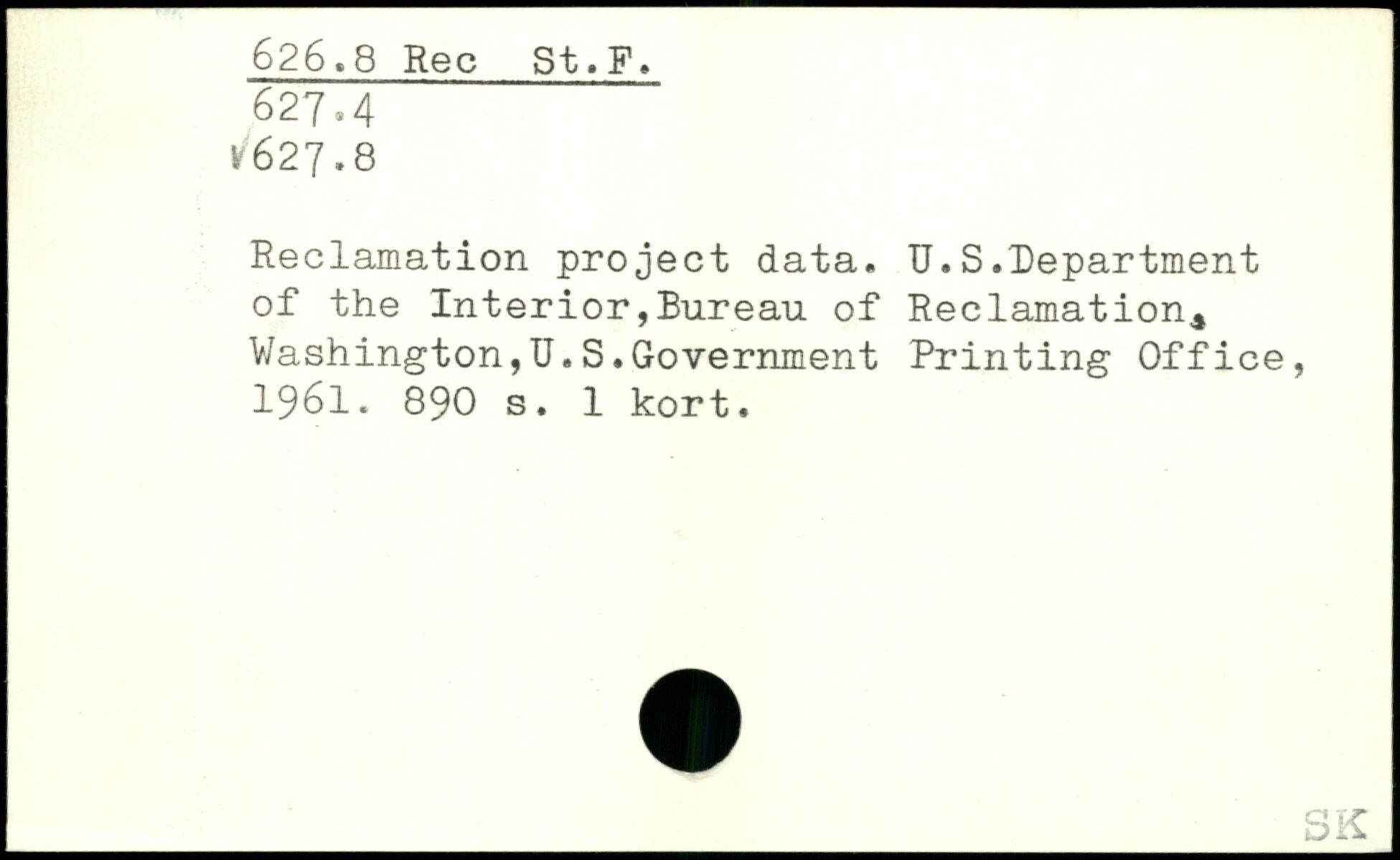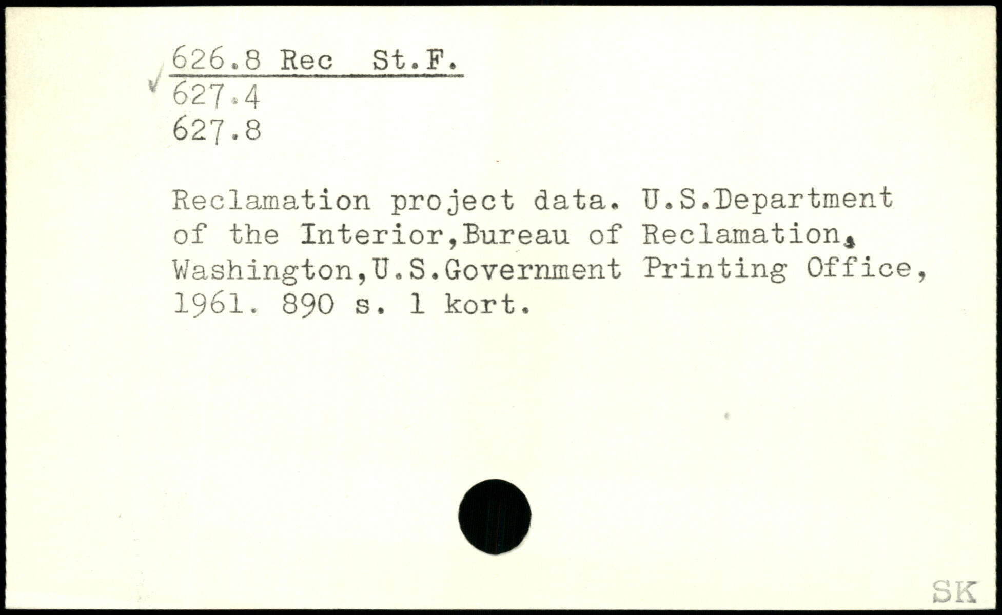 Reclamation project data. U.S.Department of the Interior,Bureau of Reclamation. Washington,U.S.Government Printing Office, 1961.