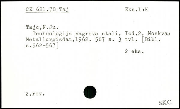 Tajc,N.Ju. Technologija nagreva stali. Izd.2. Moskva. Metallurgizdat,1962.