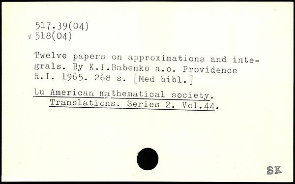 Twelve papers on approximations and integrals. By K.1.Babenko a.o. Providence R.I. 1963.