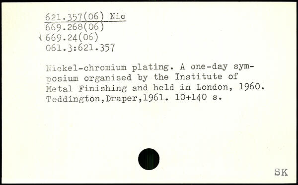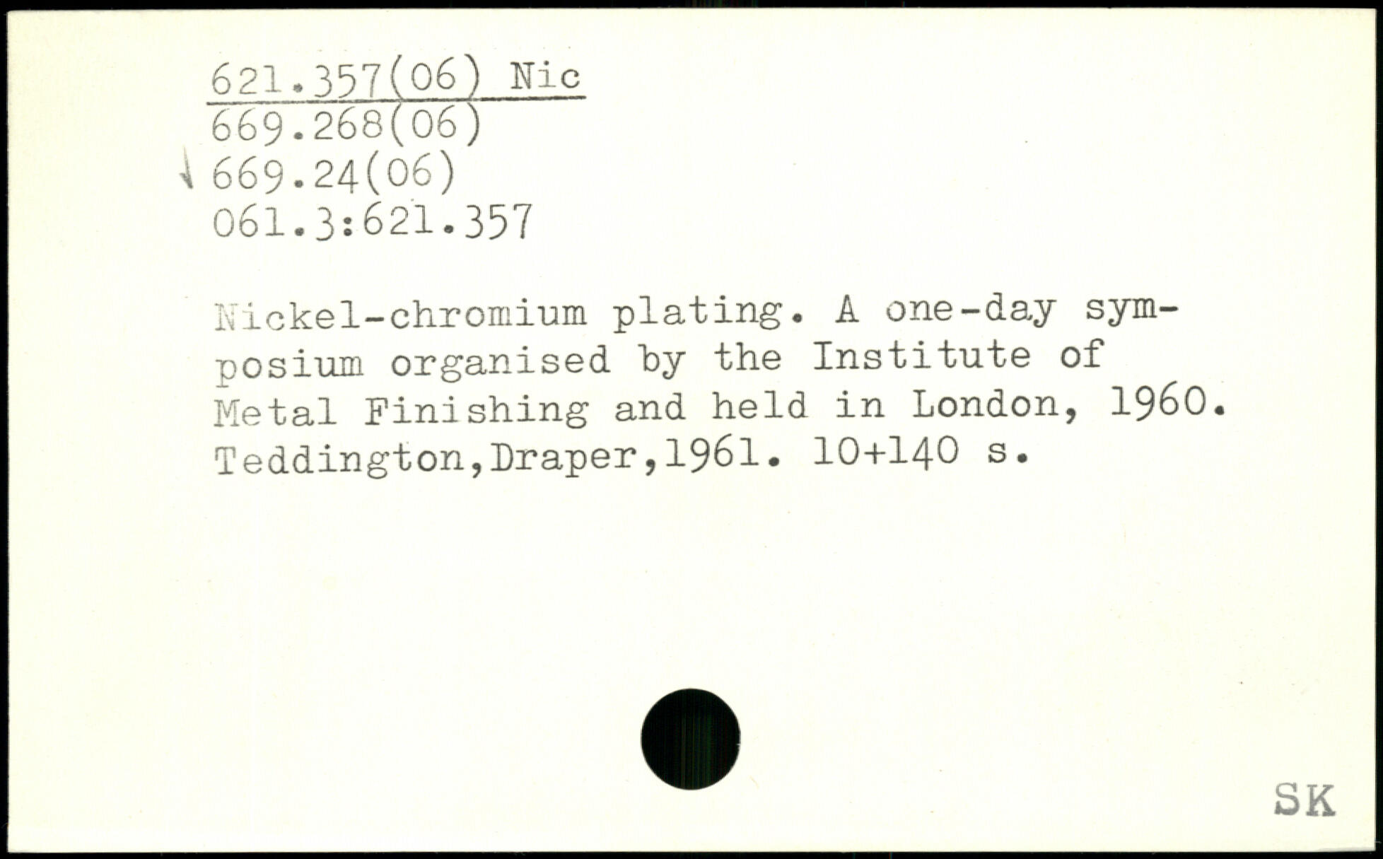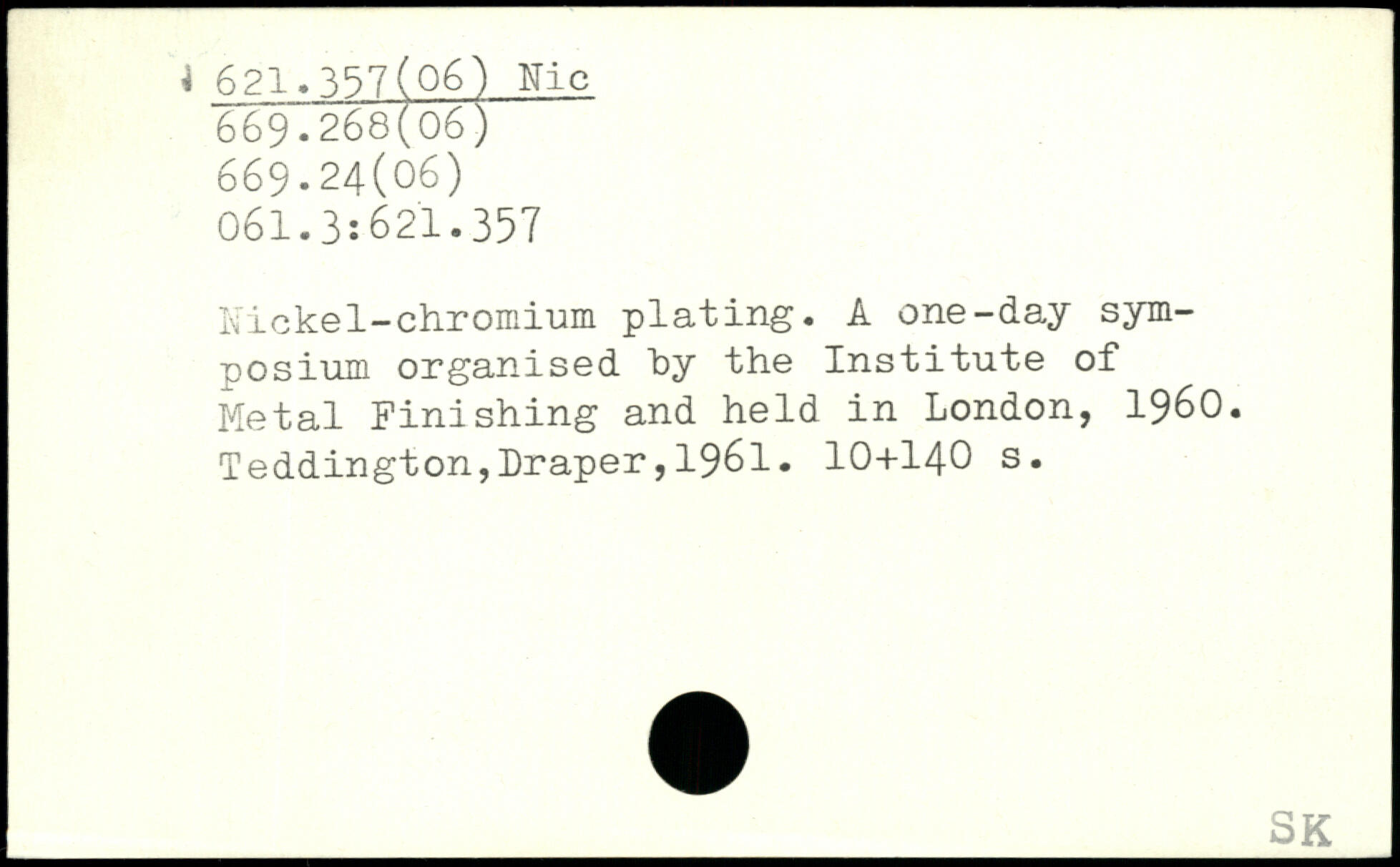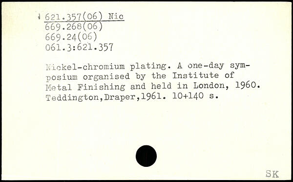 Ilickel-chromium plating. A one-day symposium organised "by the Institute of Metal Finishing and held in London, 1960.