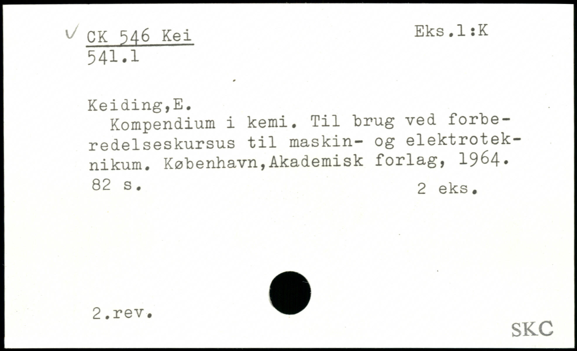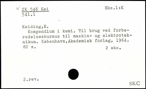 Kompendium i kemi. Til brug ved forberedelseskursus til maskin- og elektrotek-nikum. København,Akademisk forlag, 19M.
