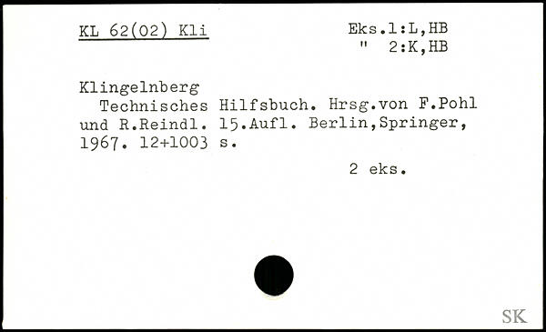 Technisches Hilfsbuch. Hrsg.von F.Pohl und H.Reindl.