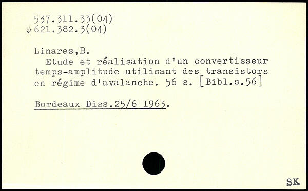Etude et réalisation d’un convertisseur temps-amplitude utilisant des transistors en régime d'avalanche.