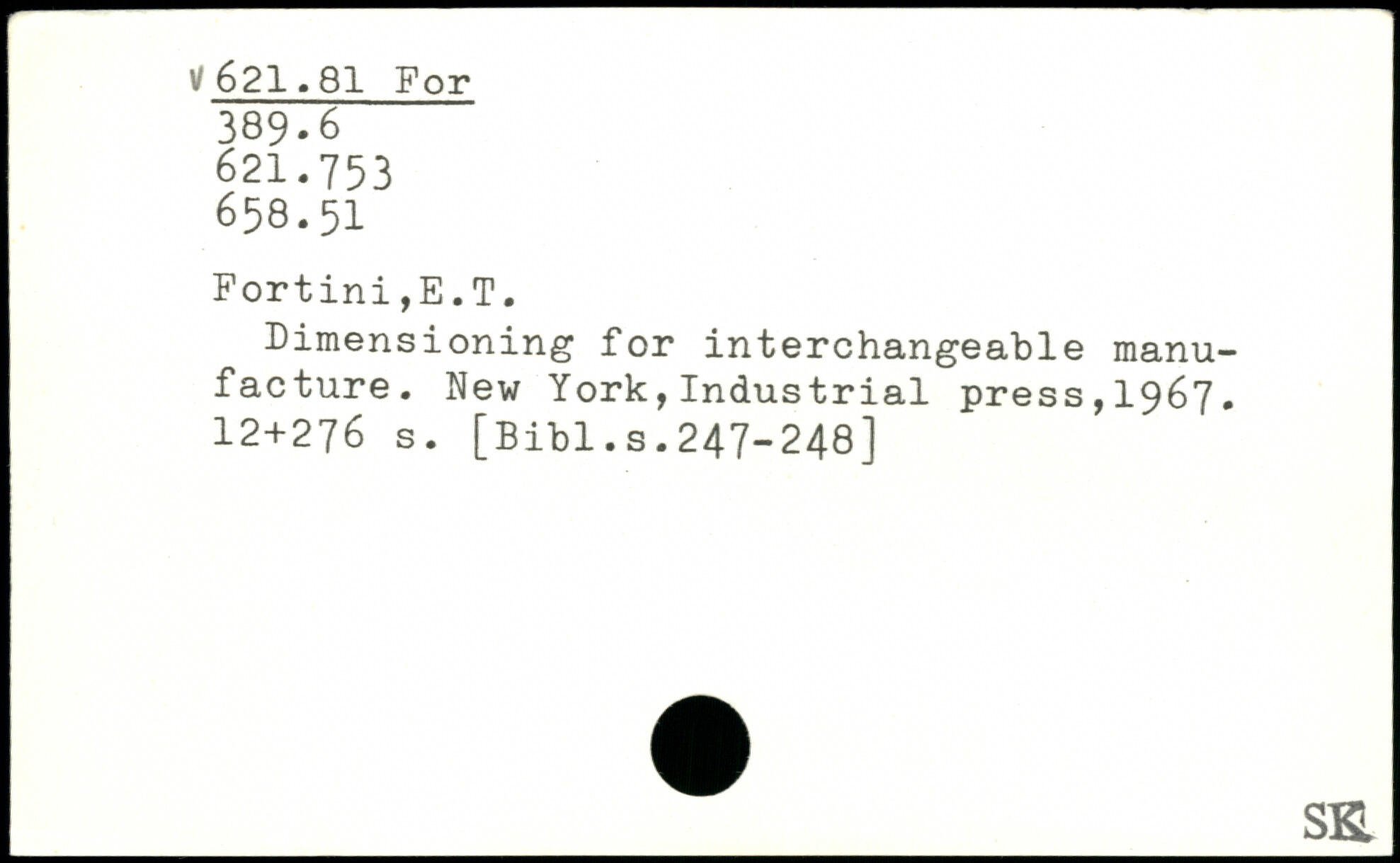 Dimensioning for interchangeable manufacture.