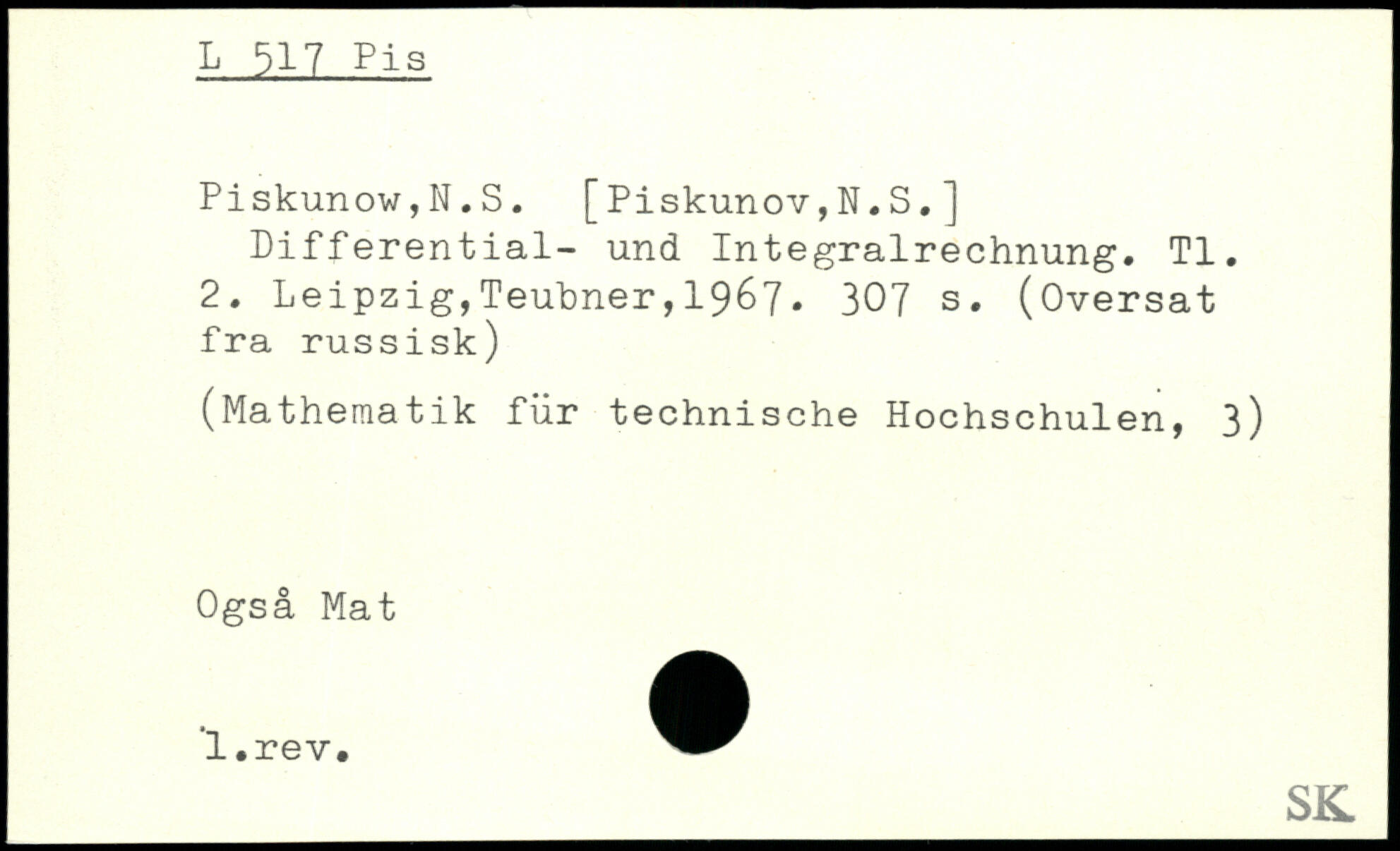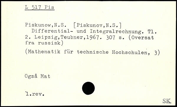 Piskunow,N.S. [Piskunov,N.S.] Differential- und Integralrechnung. TI. 2.