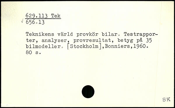 Teknikens värld provkör bilar, Testrapporter, analyser, provresultat, betyg på 35 bilmodeller, jStockholm],Bonniers,1960.