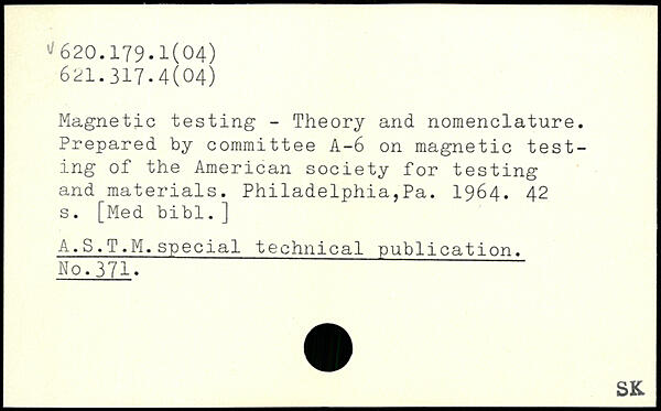 Magnetic testing - Theory and nomenclature. Prepared by committee A-6 on magnetic testing of the American society for testing and materials. Philadelphia,Pa. 1964.