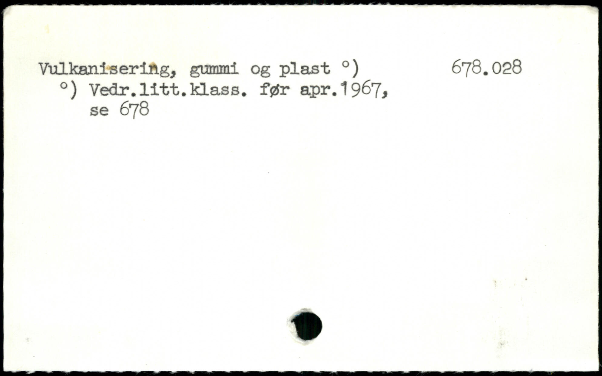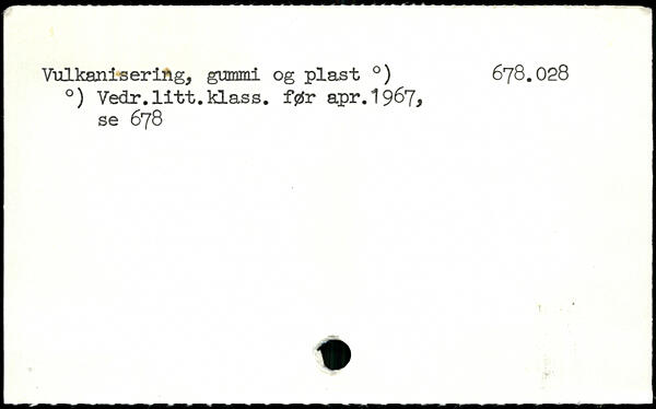 Vulkanisering, gummi og plast .) 678.028 .) Vedr.litt.klass. før apr.1967, se 678