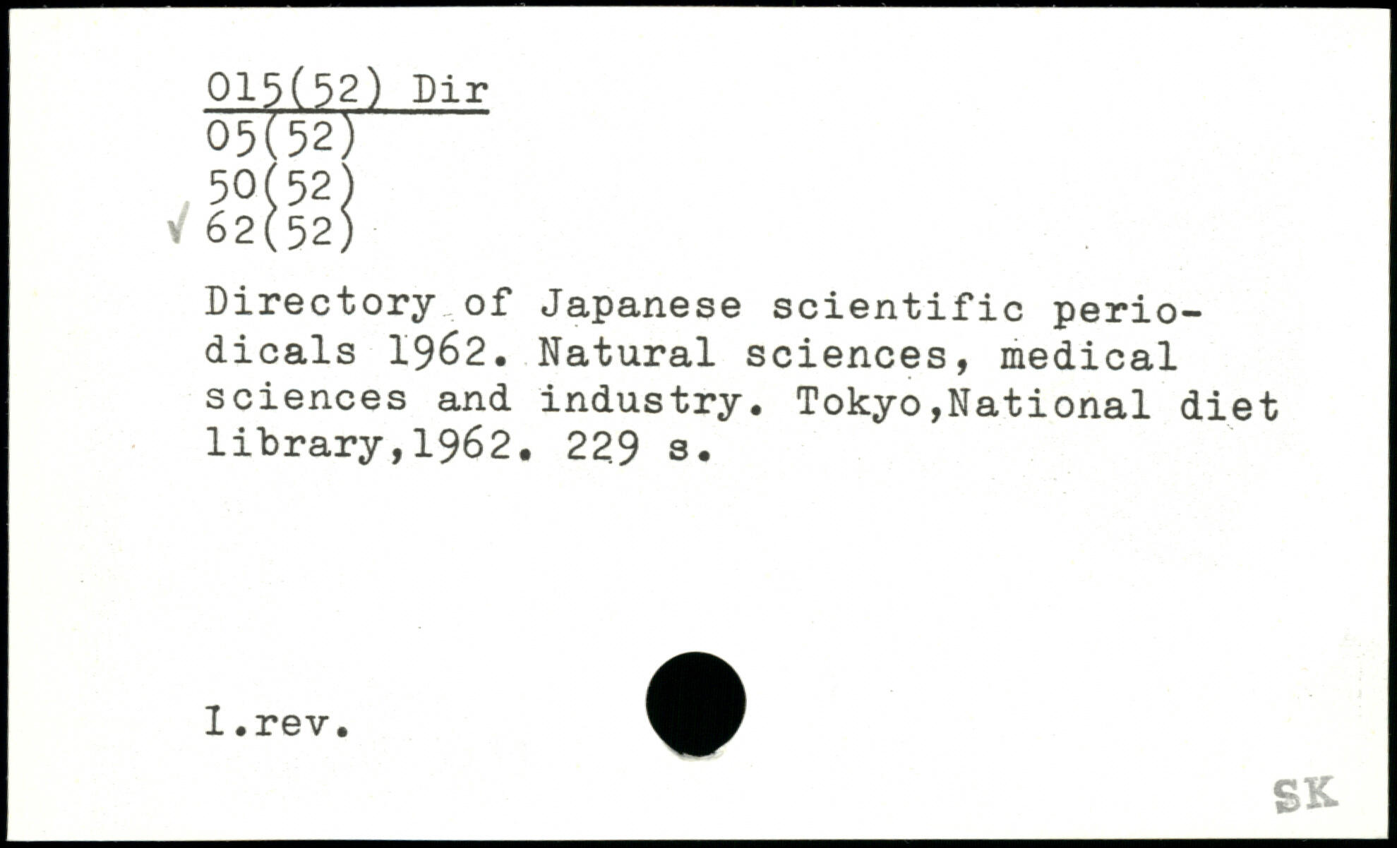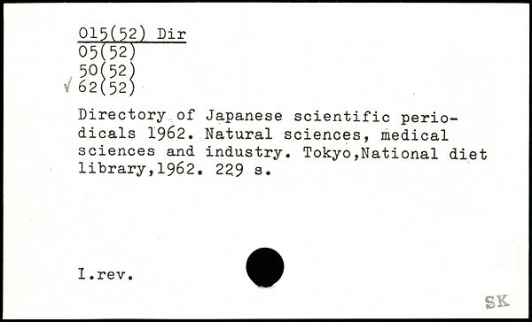 UDK: 015(52) Dir, 50, 52, 62(52)