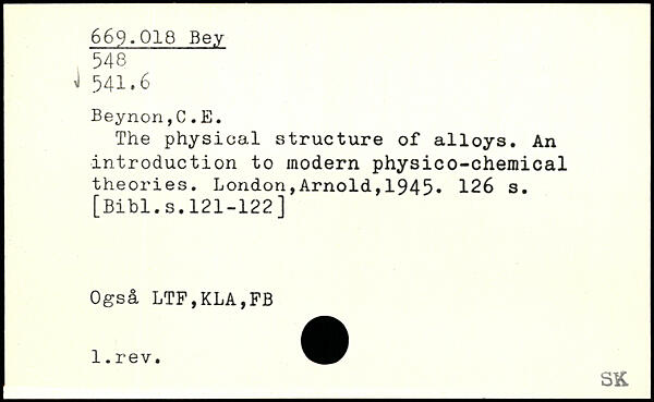 The physical structure of alloys. An introduction to modern physico-chemical theories.