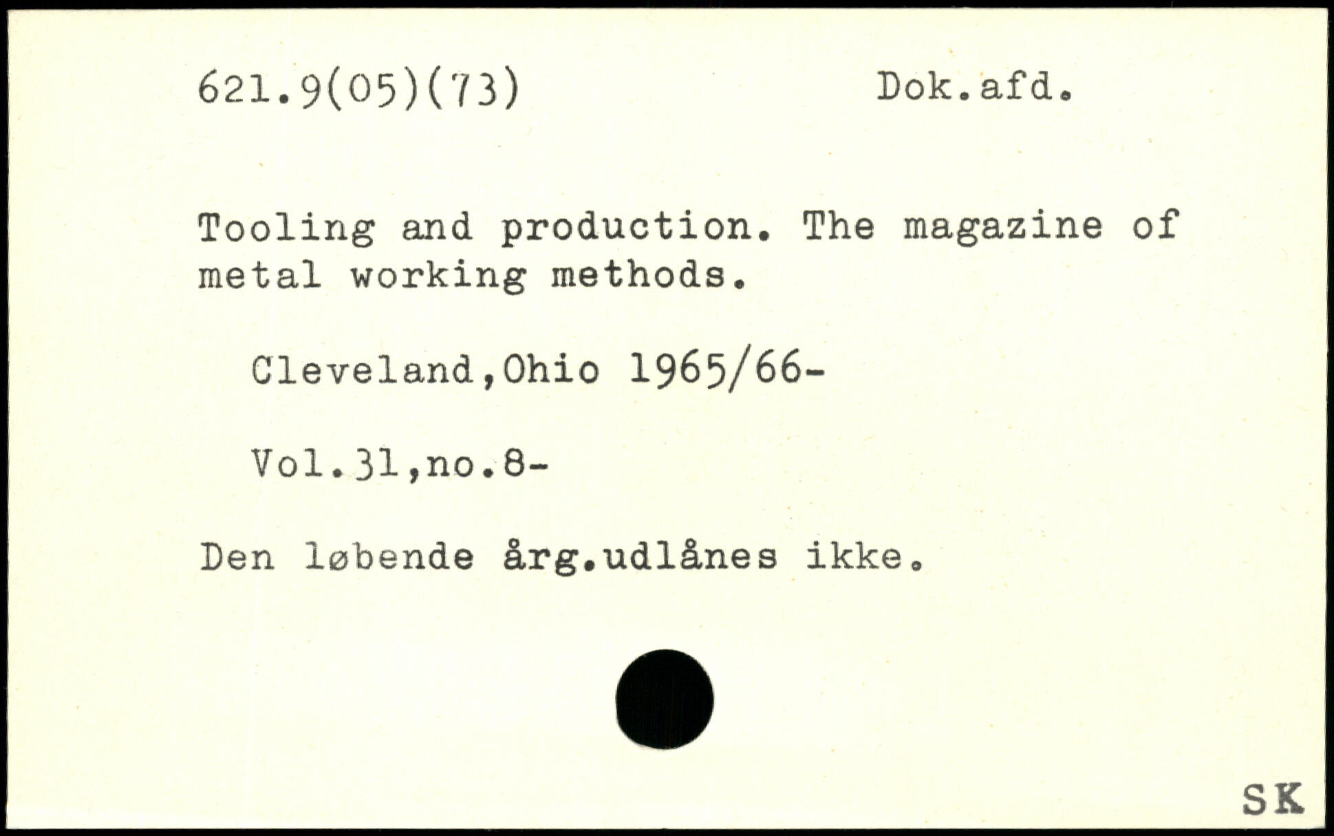 Tooling and production. The magazine of metal working methods. Cleveland,0hio 1965/66-