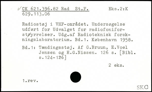 Radiostøj i VHF-området. Undersøgelse udført for Udvalget for radiofonifor-st/yrrelser. Udg.af Radioteknisk forskningslaboratorium.