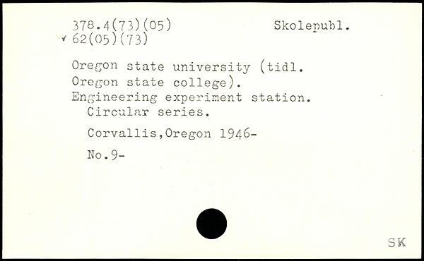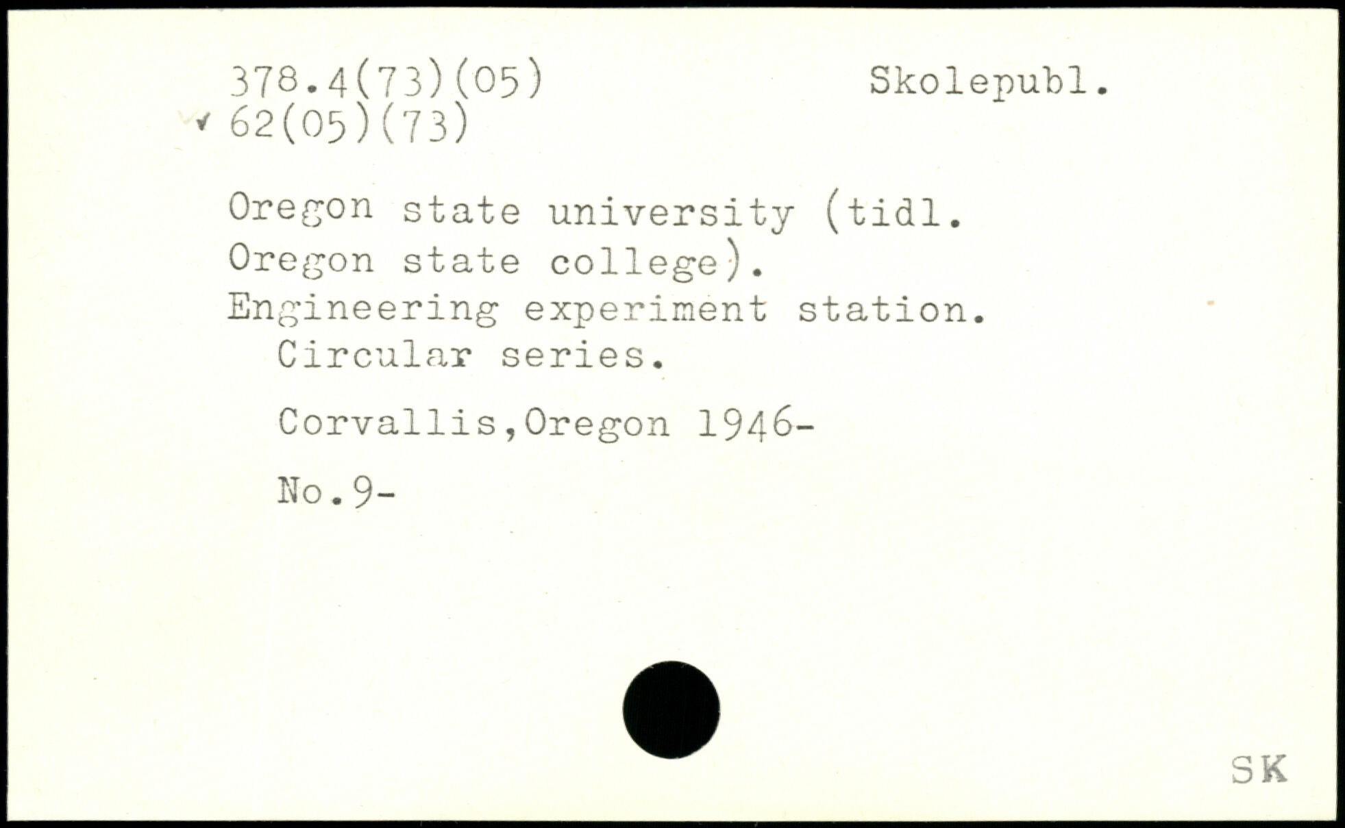 Oregon state university (tidl. Oregon state college). Engineering experiment station. Circular series. Corvallis,Oregon 1946- No. 9-