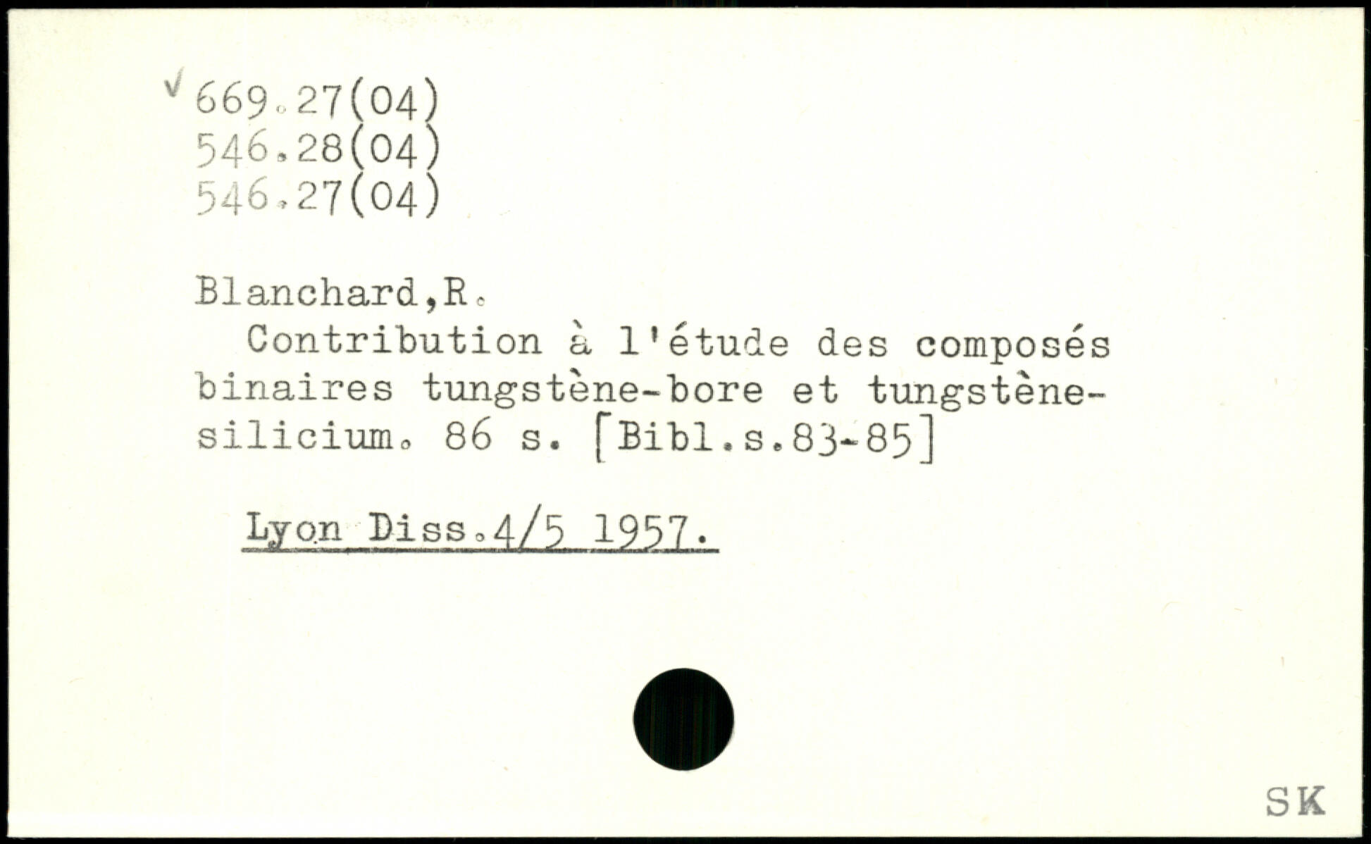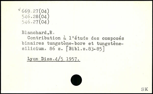 Blanchard, Rc Contribution à l’étude des composes binaires tungstène-bore et tungstène-silicium