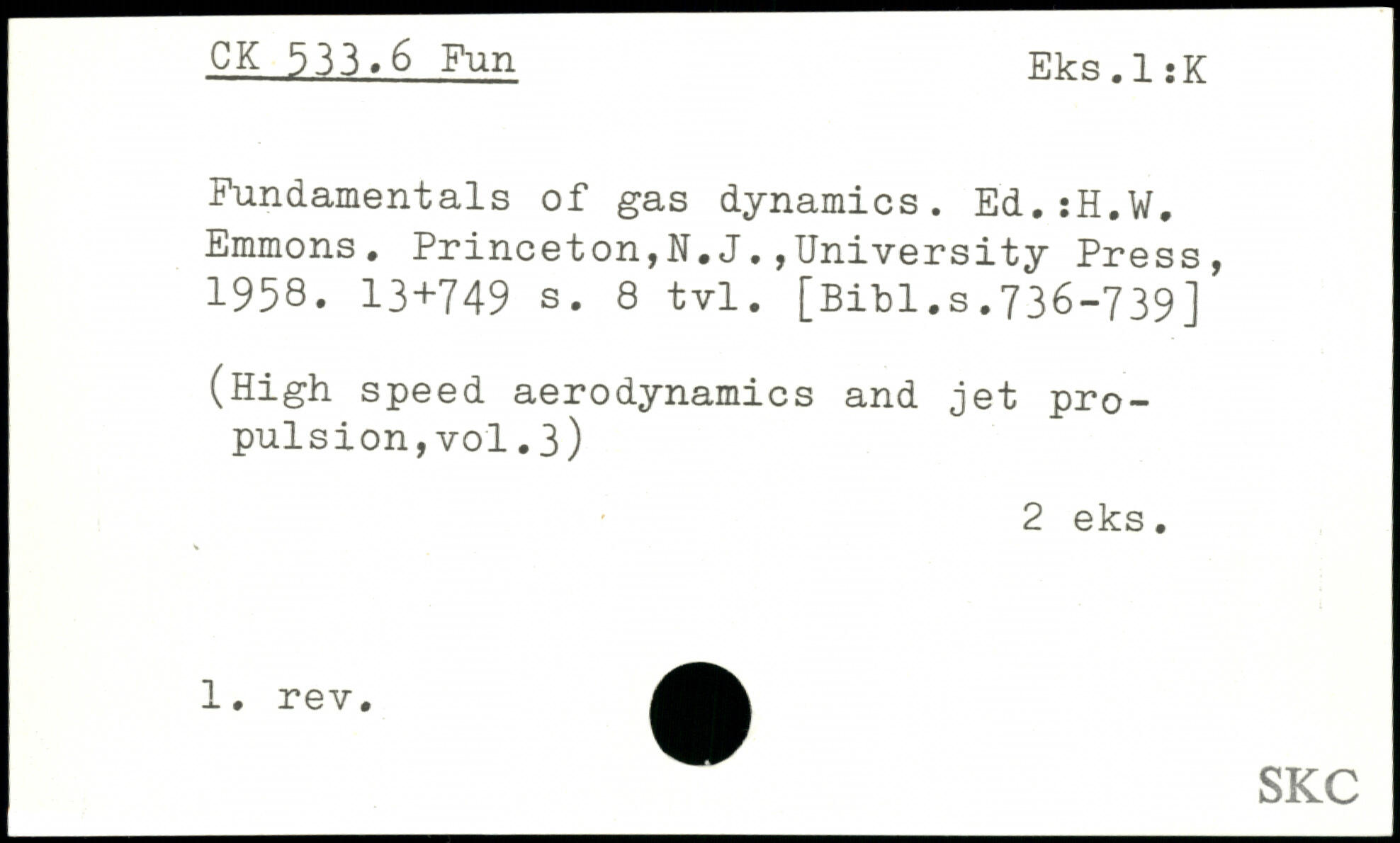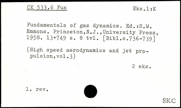 Fundamentals of gas dynamics. Ed.iH.W. Emmons.