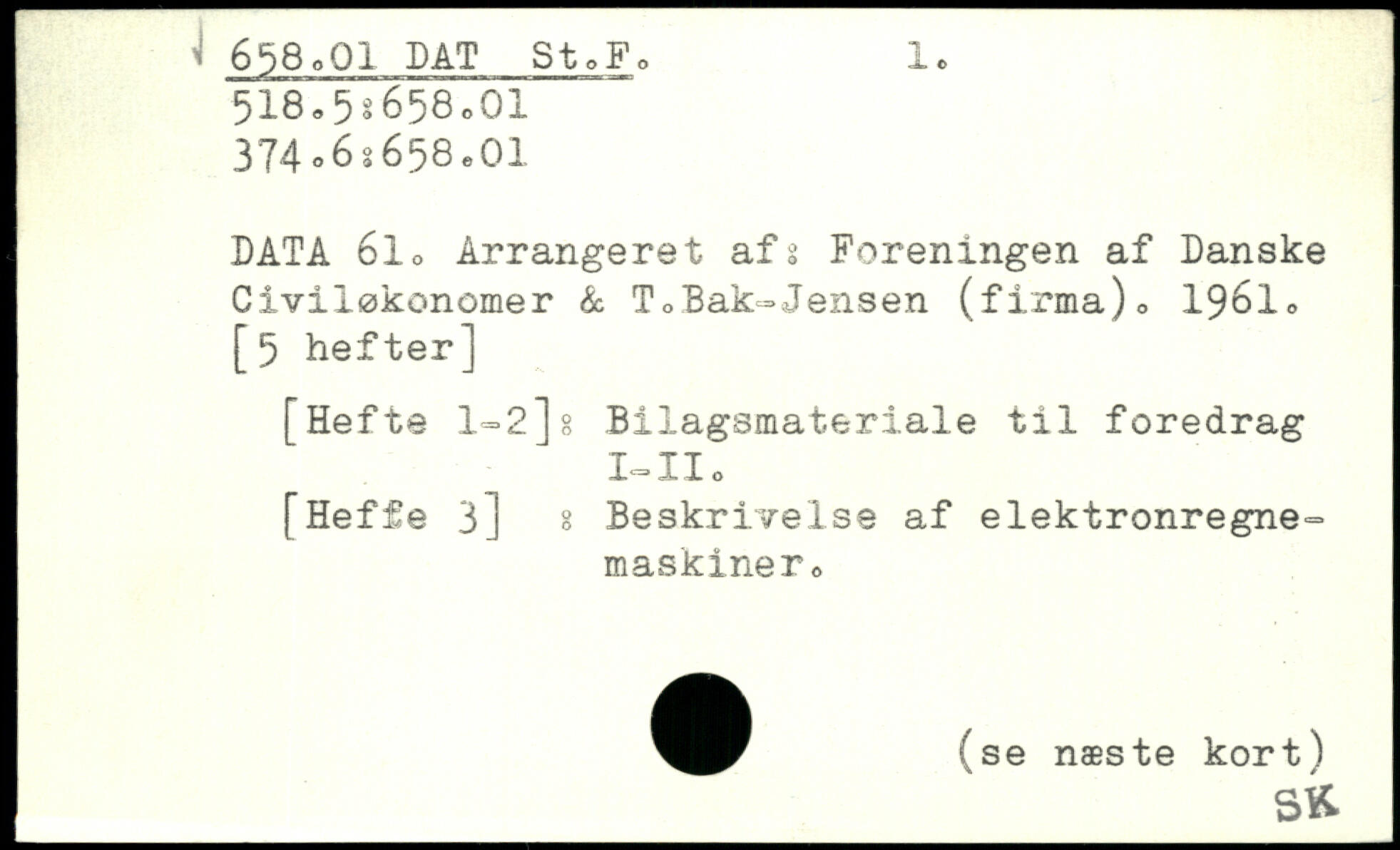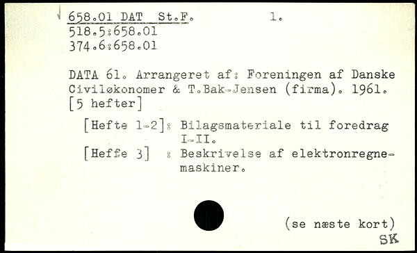 DATA 6lo Arrangeret af s Foreningen af Danske Civiløkonomer & ToBak-Jensen (firma), 1961,