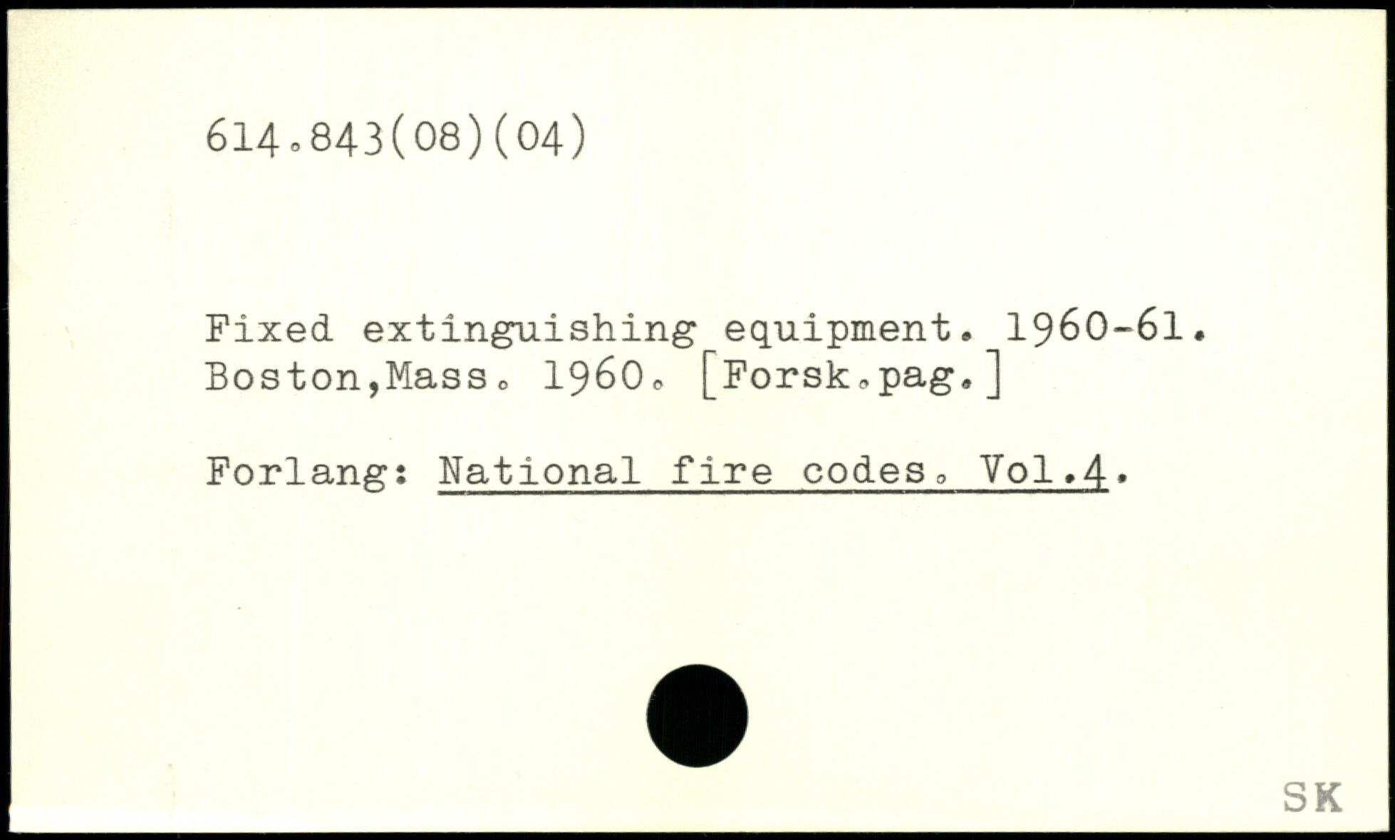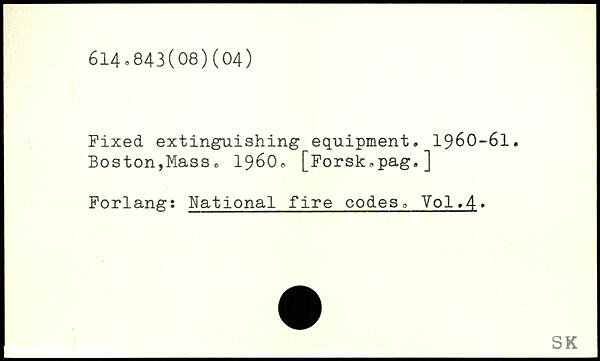 Fixed extinguishing equipment. 1960-6I. Boston,Mass. 19600 [Forsk,pag.] Forlang: National fire codes, V0I.4