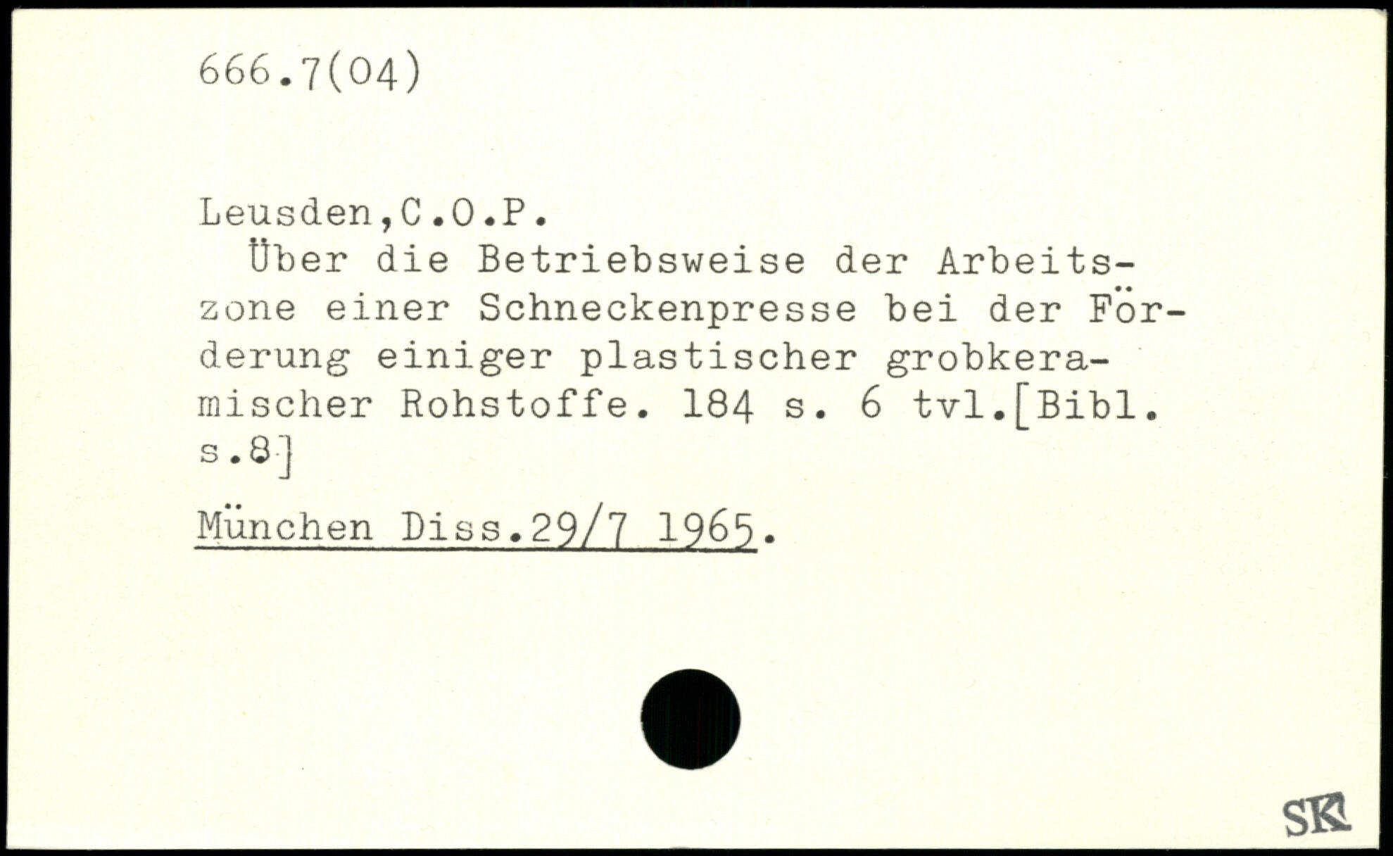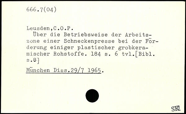 Über die Betriebsweise der Arbeitszone einer Schneckenpresse bei der Forderung einiger plastischer grobkeramischer Rohstoffe.
