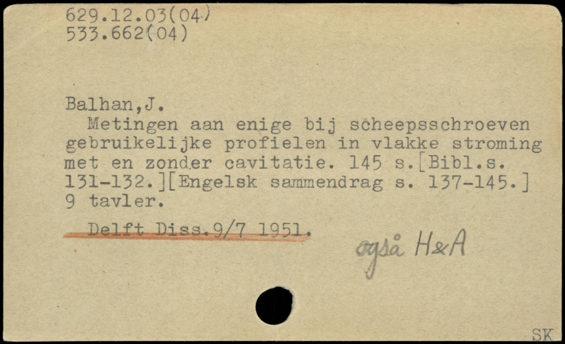 Metingen aan enige bi j scheepsschroeven gebruikelijke profielen in vlakke stroming met en zonder cavitatie.
