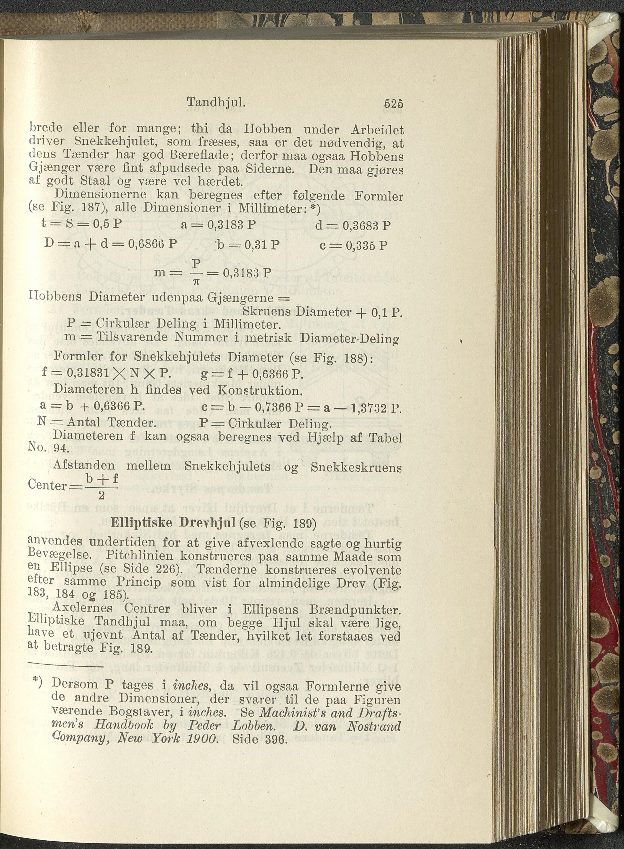 Formler for Snekkehjulets Diameter (se Fig. 188):