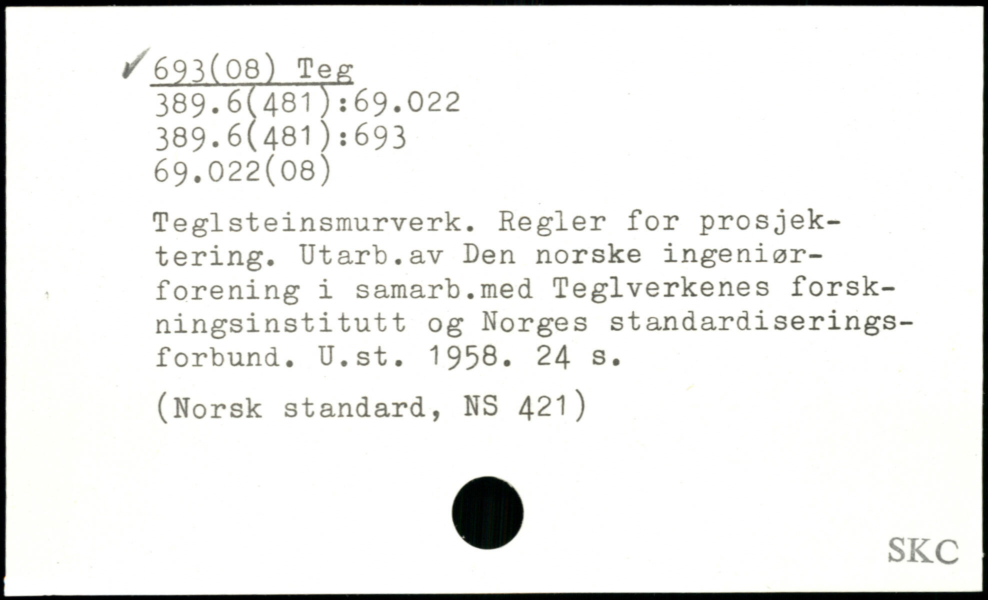 Teglsteinsmurverk. Regler for prosjek-tering. Utarb.av Den norske ingeniørforening i samarb.med Teglverkenes forsk-ningsinst itut t og Norges standardiserings-forbund. U.st. 1958
