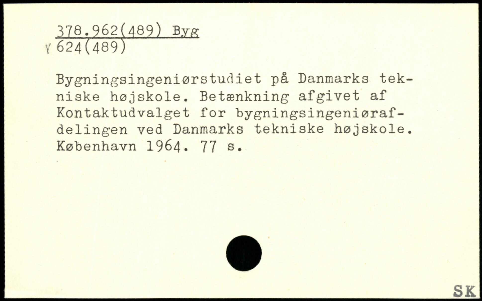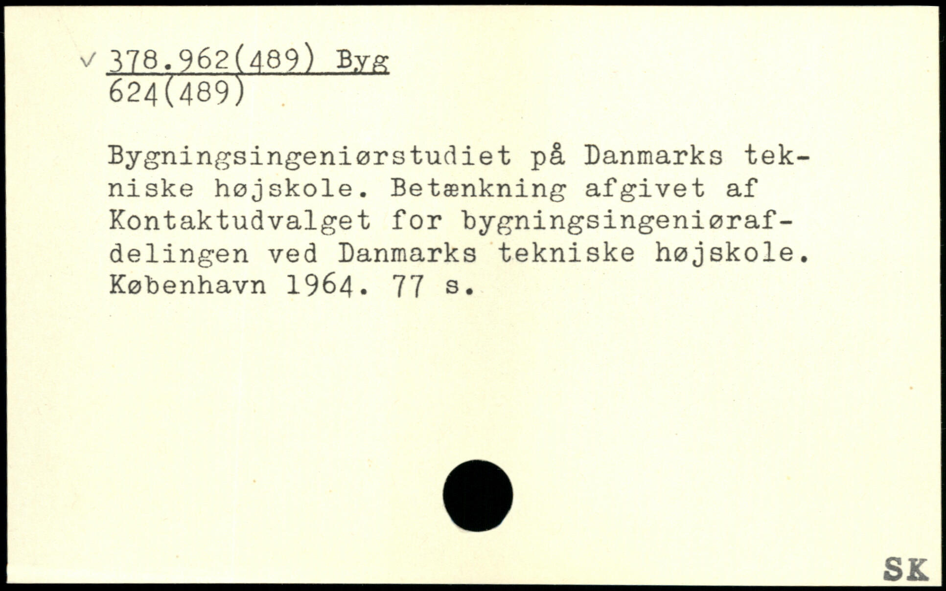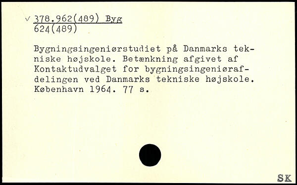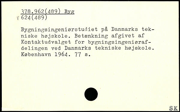 Bygningsingeniørstudiet på Danmarks tekniske højskole. Betænkning afgivet af Kontaktudvalget for bygningsingeniørafdelingen ved Danmarks tekniske højskole.