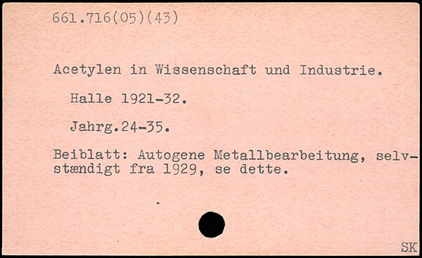 Acetylen in Wissenschaft und Industrie. Halle 1921-32. Jahrg.24-35. Beiblatt: Autogene Metallbearbeitung, selvstændigt fra 1929, se dette.