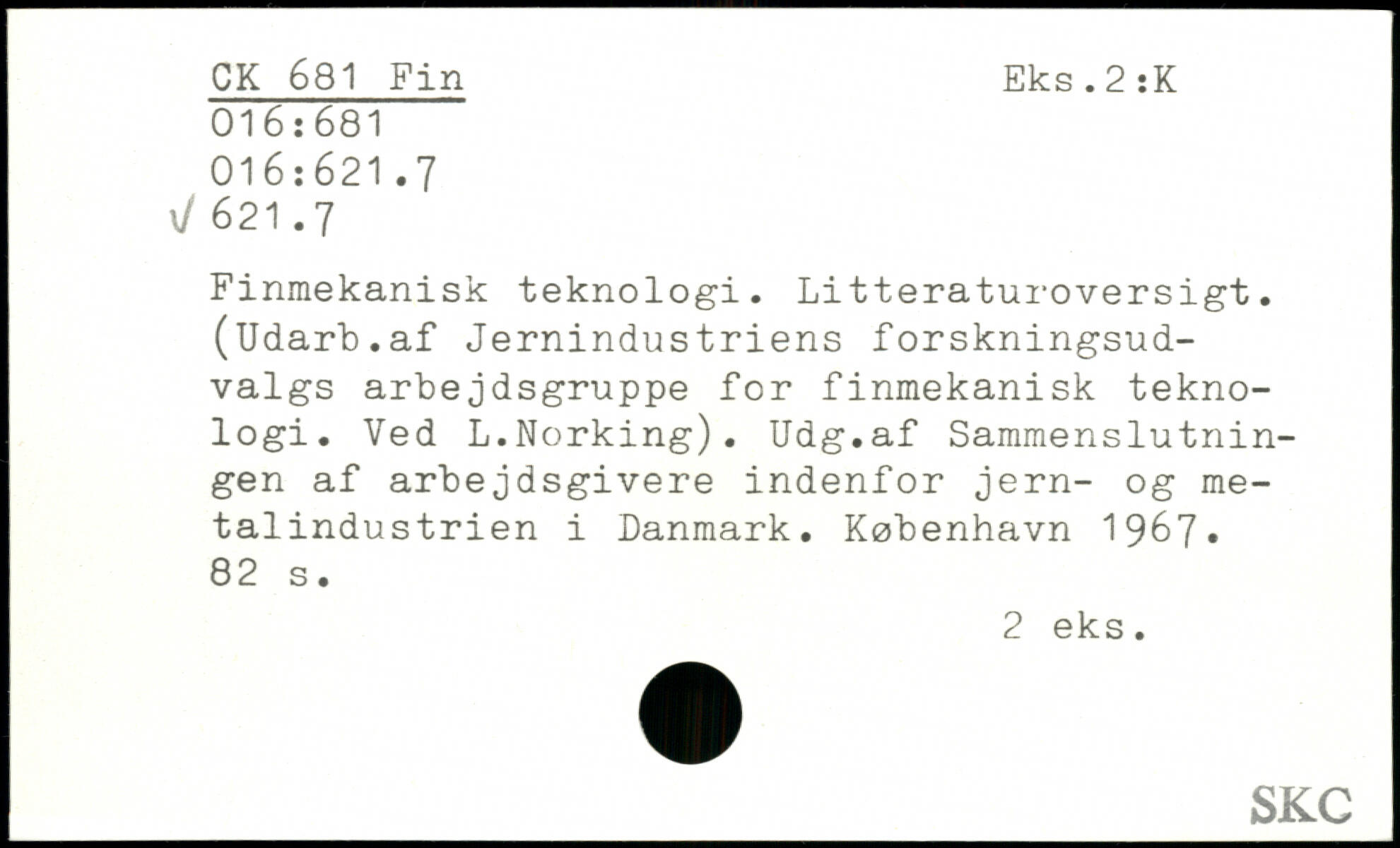 Finmekanisk teknologi. Litteraturoversigt. (Udarb.af Jernindustriens forskningsud-valgs arbejdsgruppe for finmekanisk teknologi. Ved L.Norking). Udg.af Sammenslutningen af arbejdsgivere indenfor jern- og metalindustrien i Danmark.