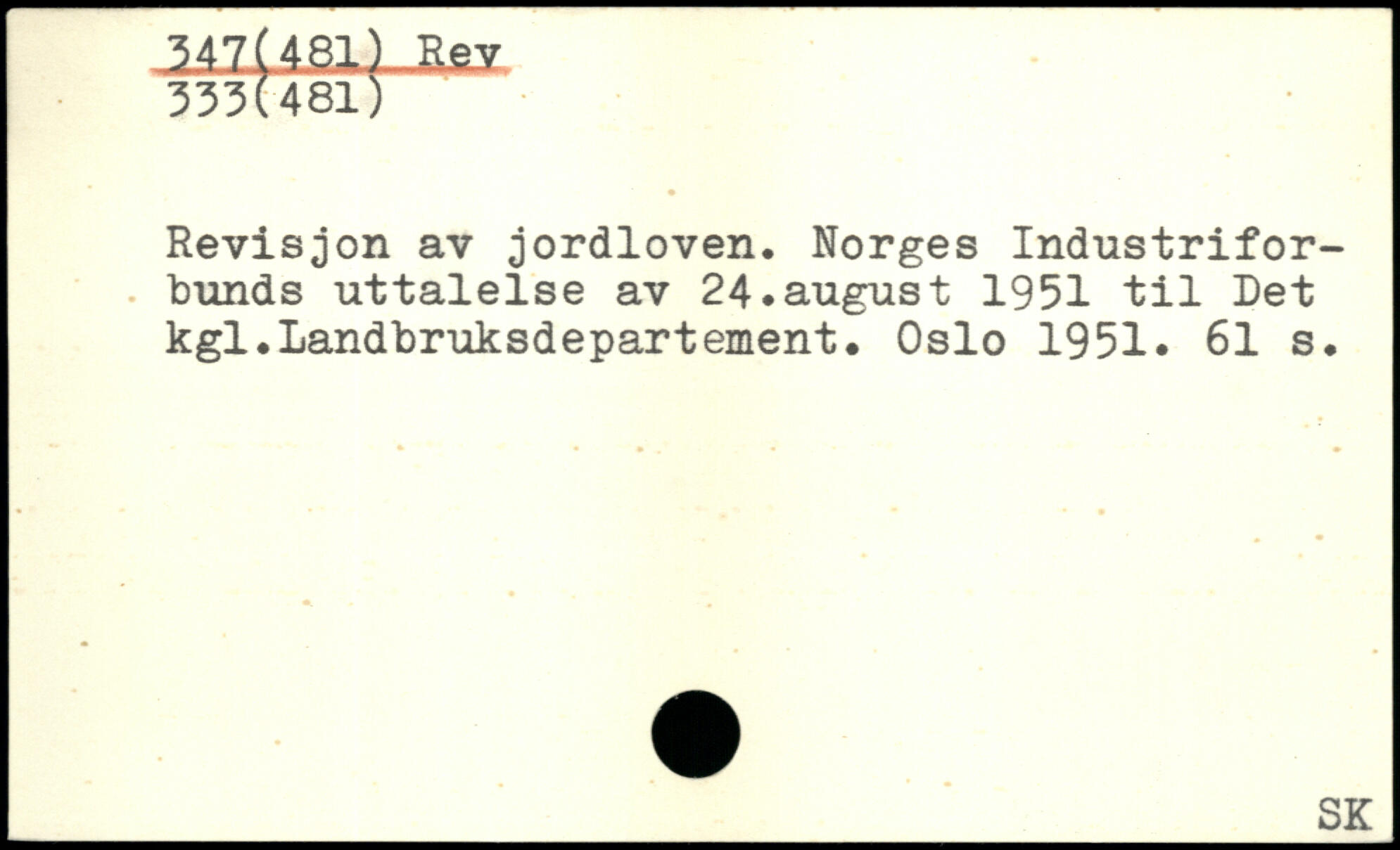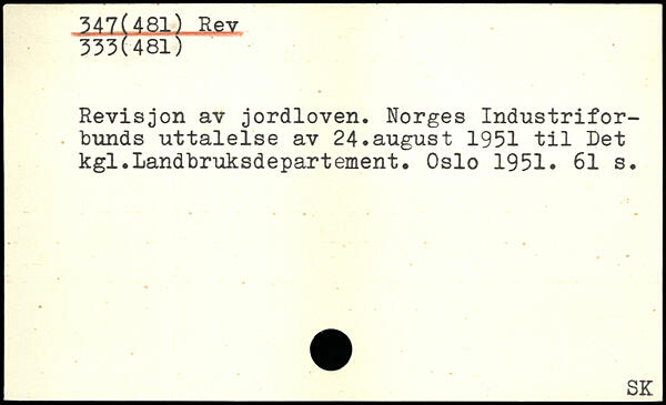 Revisjon av jordloven. Norges Industriforbunds uttalelse av 24.august 1951 til Det kgl.Landbruksdepartement. Oslo 1951.