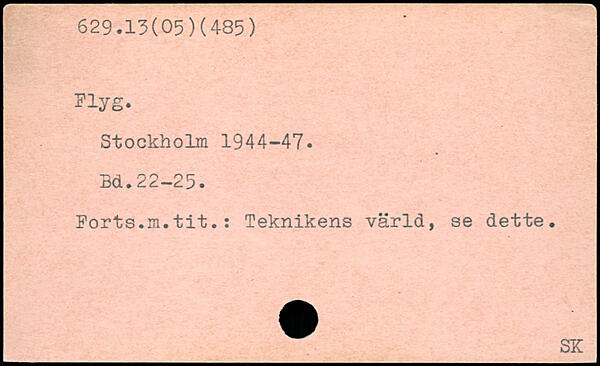 Stockholm 1944-47. Bd.22-25. Forts.m.tit.: Teknikens värld, se dette. _.
