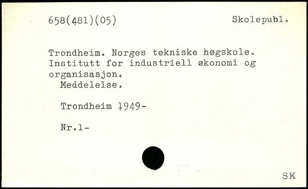 Trondheim. Norges tekniske høgskole. Institutt for industriell økonomi og organisasjon. Meddelelse.