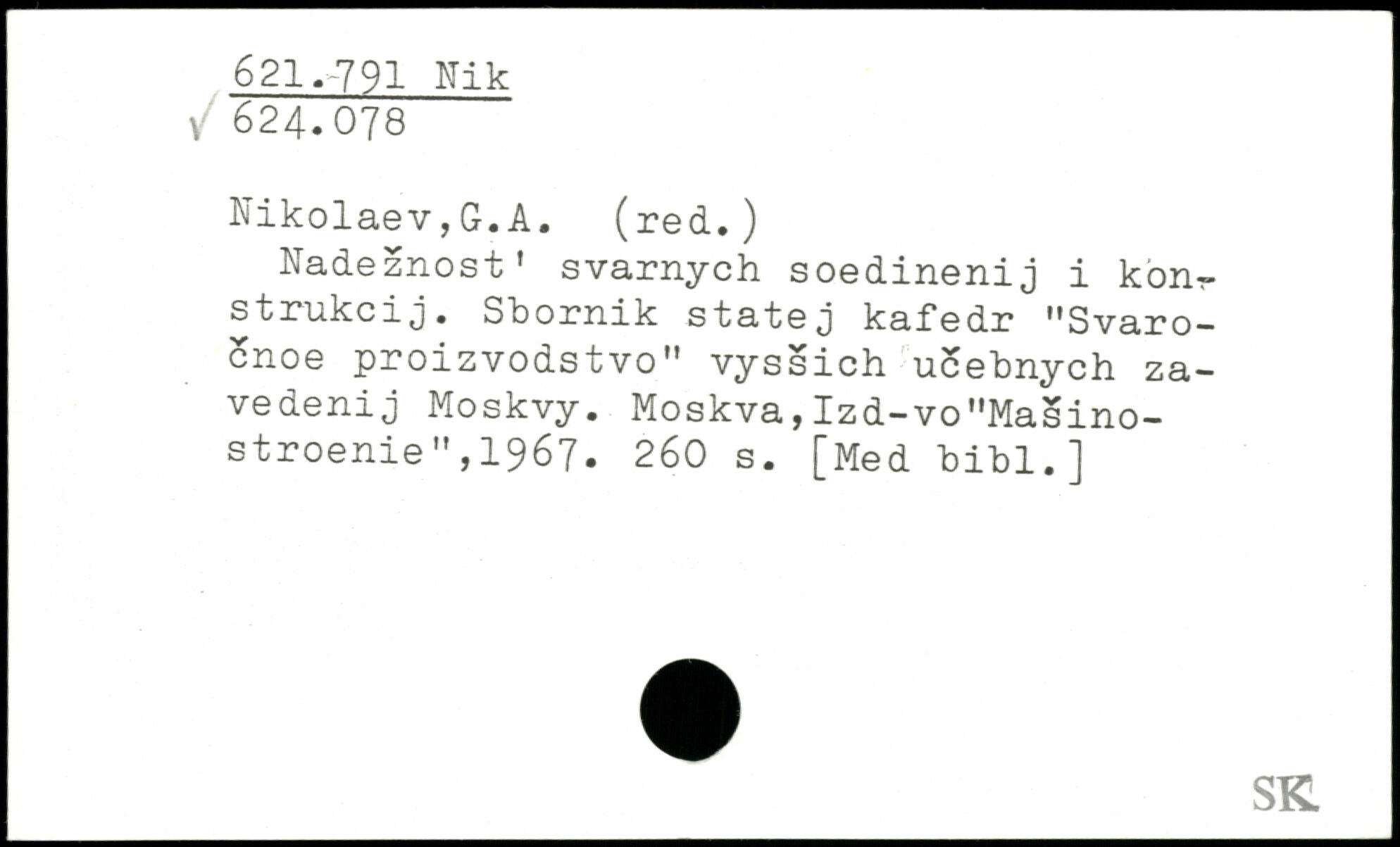 Nadeznost' svarnych soedinenij i kon.-strukcij. Sbornik statej kafedr "Svaro-cnoe proizvodstvo" vyssich ucebnych za-vedenij Moskvy. Moskva,Izd-vo"Masino-stroenie",1967.