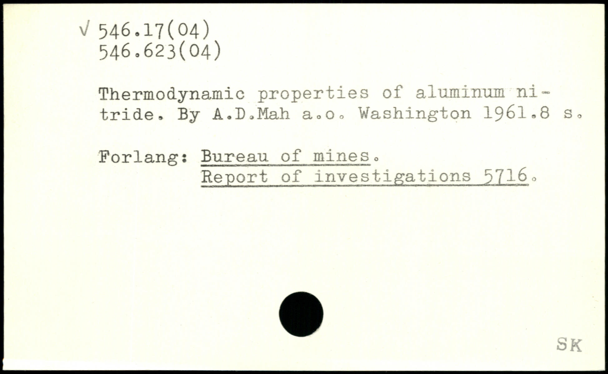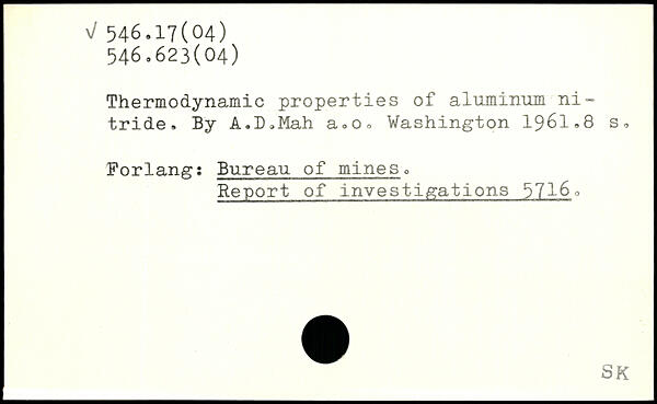 Thermodynamic properties of aluminum nitride. By A.D.Mah a.Oo