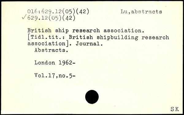 British ship research association. [Tidl.tit.: British shipbuilding research association]. Journal. Abstracts.