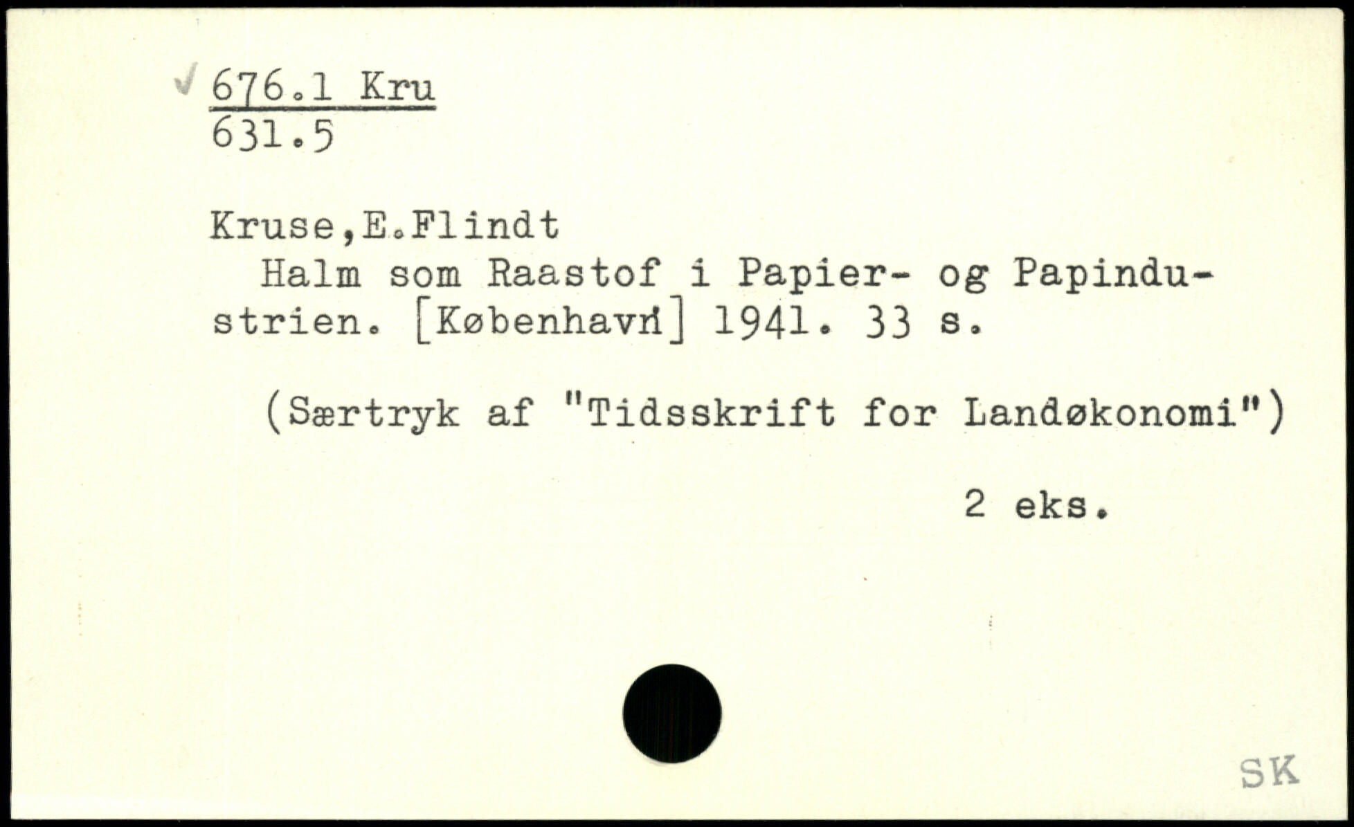 Halm som Raastof i Papier- og Papindustrien. [Københavri] 1941
